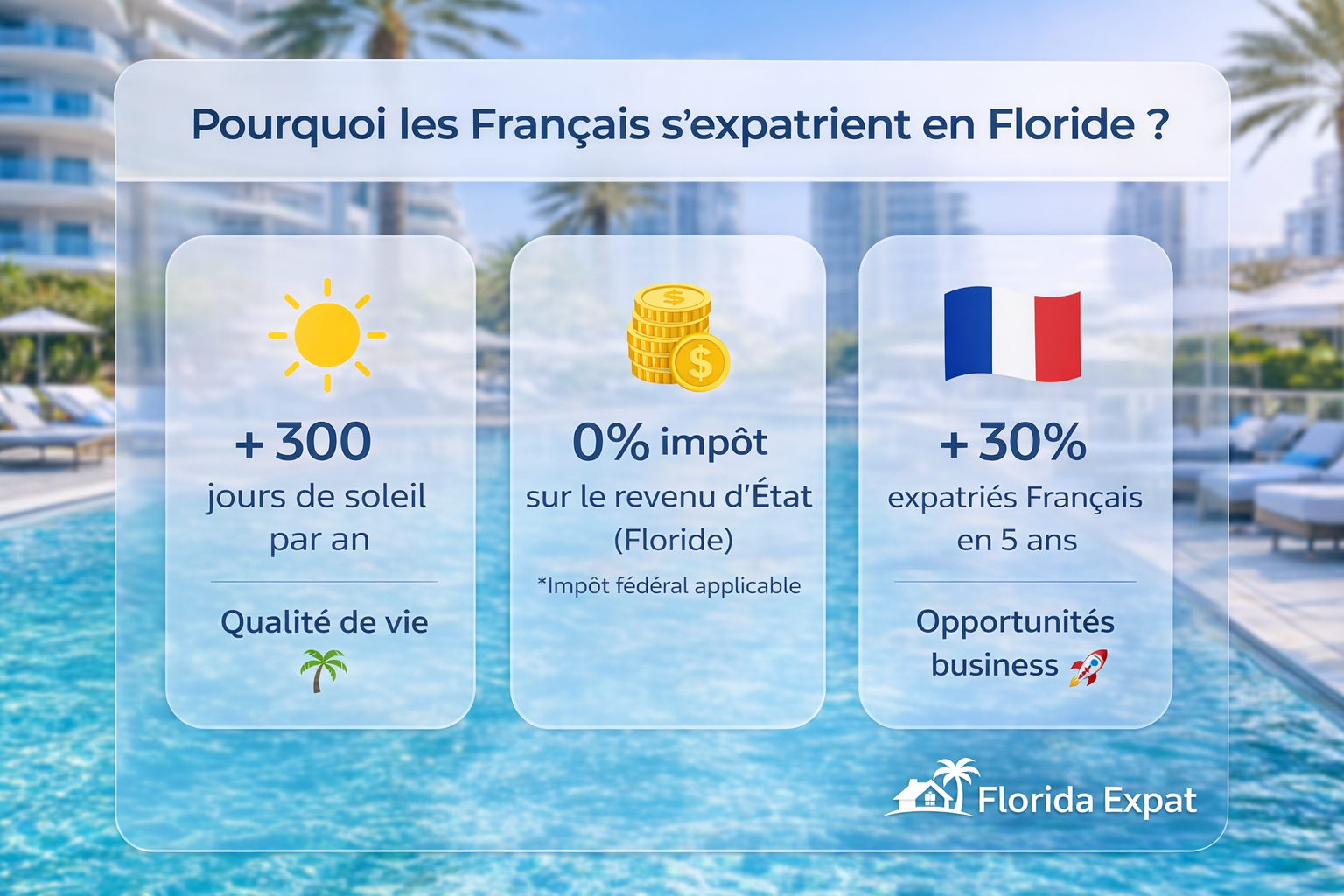 Chaque année, de plus en plus de Français font le choix de s’expatrier en Floride. Entrepreneurs, investisseurs ou familles en quête d’un meilleur cadre de vie… la Floride attire pour des raisons bien concrètes.